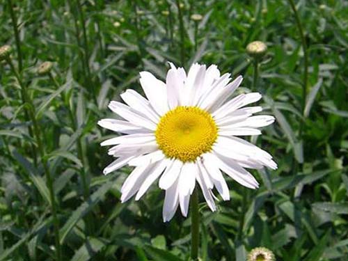 濱菊(Leucanthemum vulgate Lam.)菊科多年生草本,高15-80厘米。莖直立,通常不分枝,被絨毛或卷毛至無毛。基生葉花期生存,長橢圓形、倒披針形、倒卵形或卵形,基部楔形,漸狹成長柄,柄長于葉片自身,邊緣圓或鈍鋸齒。全部葉兩面無毛,腺點不明顯。頭狀花序單生莖頂,有長花梗,或莖生2-5個頭狀花序,排成疏松傘房狀。總苞徑10-20毫米。全部苞片無毛,邊緣白色或褐色膜質(zhì)。瘦果長2-3毫米,無冠毛或舌狀花瘦果有長達(dá)0.4毫米的側(cè)緣冠齒。花果期5-10月。